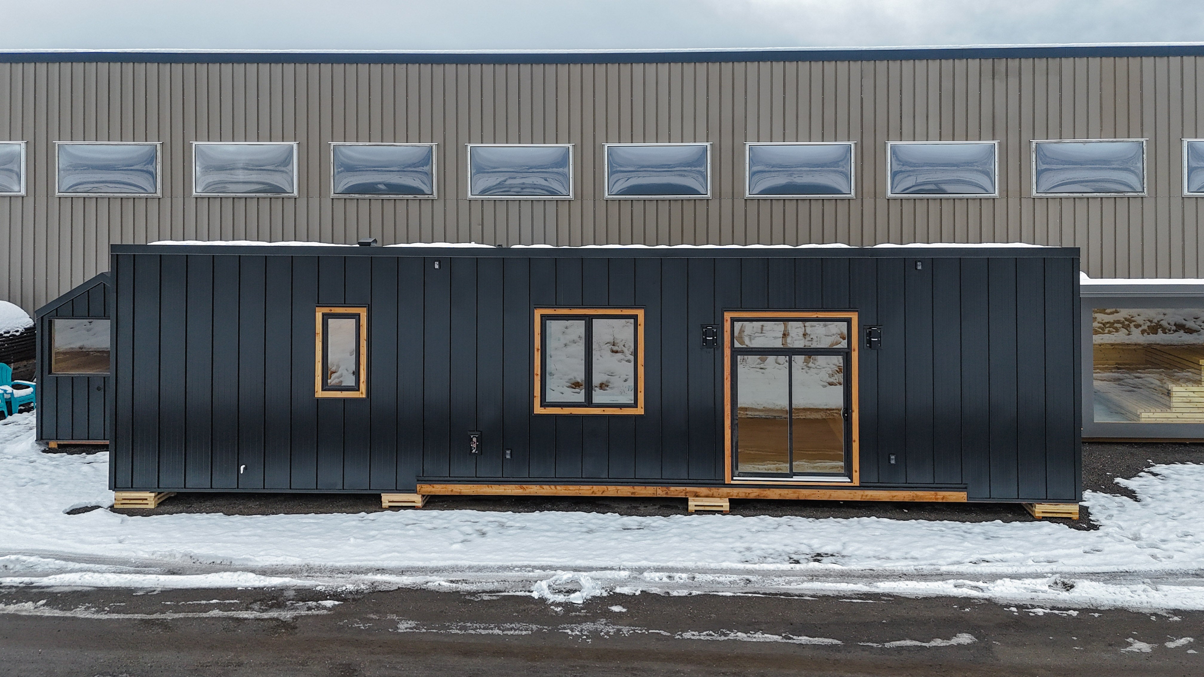 The bold black standing seam siding and warm wood accents create a striking exterior, while the expansive front deck invites you to slow down and enjoy the outdoors.